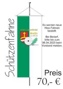 Es werden wieder neue Hiss-Fahnen bestellt. Wer noch eine für Pfingsten benötigt meldet sich bitte beim Vorstand.